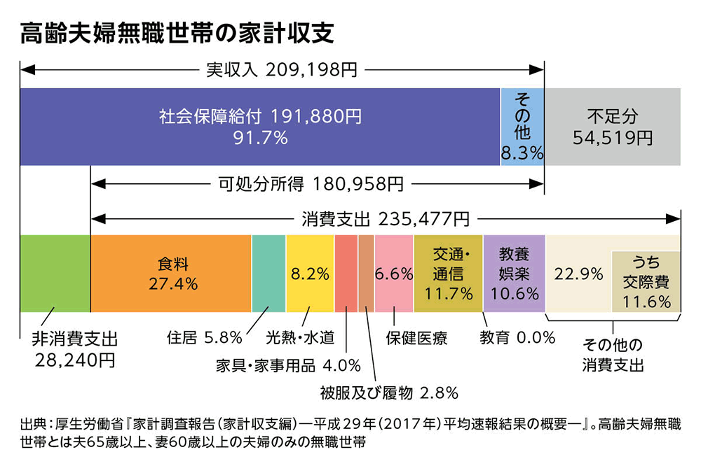 とはいえ、老後のお金が心配なこともまた事実です。総務省『家計調査報告(家計収支編)』の高齢夫婦無職世帯(夫65歳以上、妻60歳以上)の家計収支を見ると、毎月5万円以上の赤字で、退職金を含む貯蓄の取り崩しで穴埋めしている状況となっています。